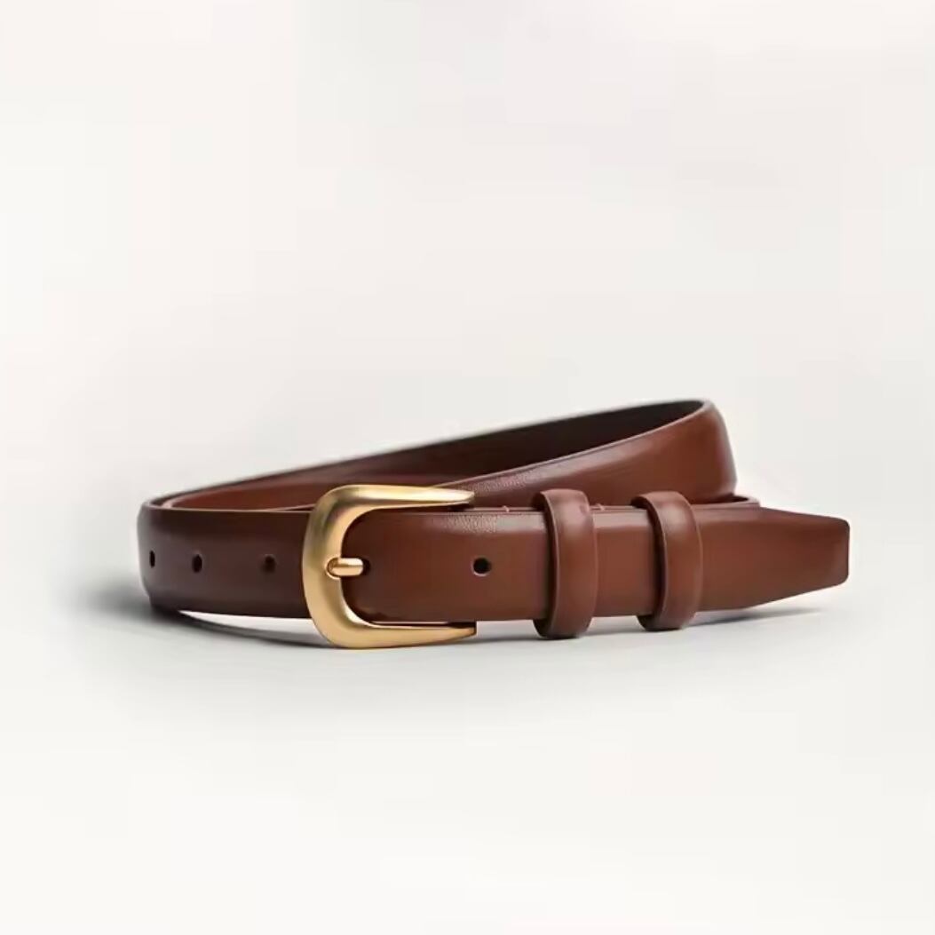 クラシックなデザインにゴールドバックルを合わせた、上品なレザーベルト。