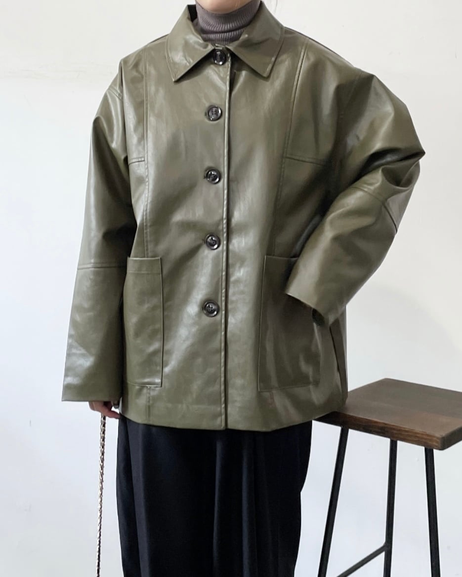 大人カジュアルにぴったりのフェイクレザージャケット。