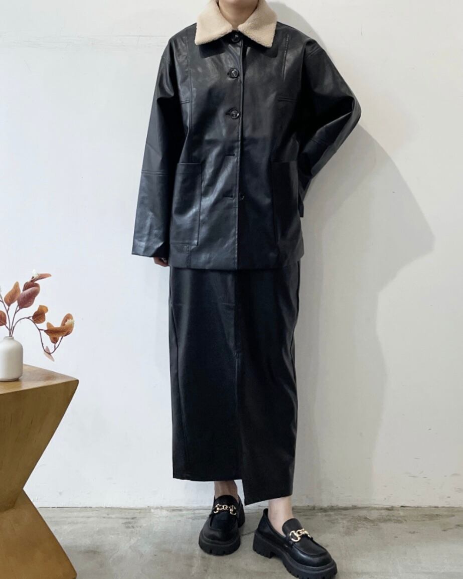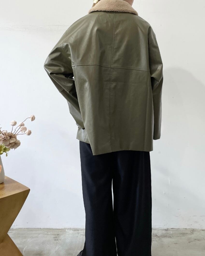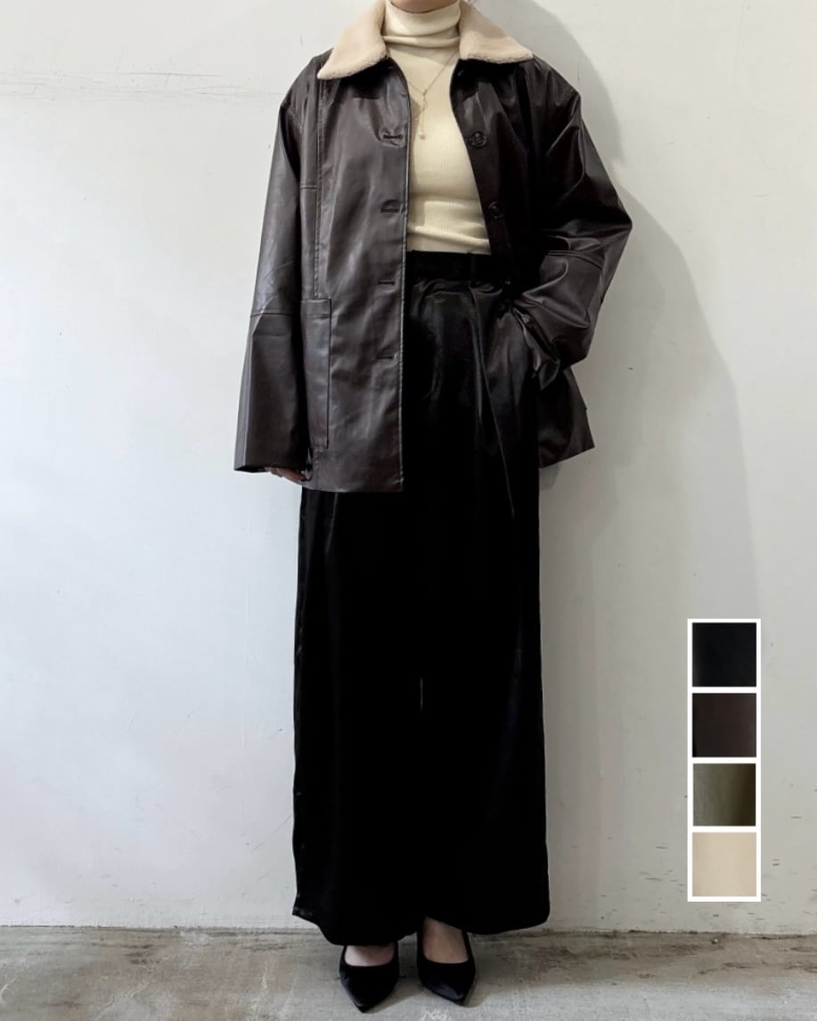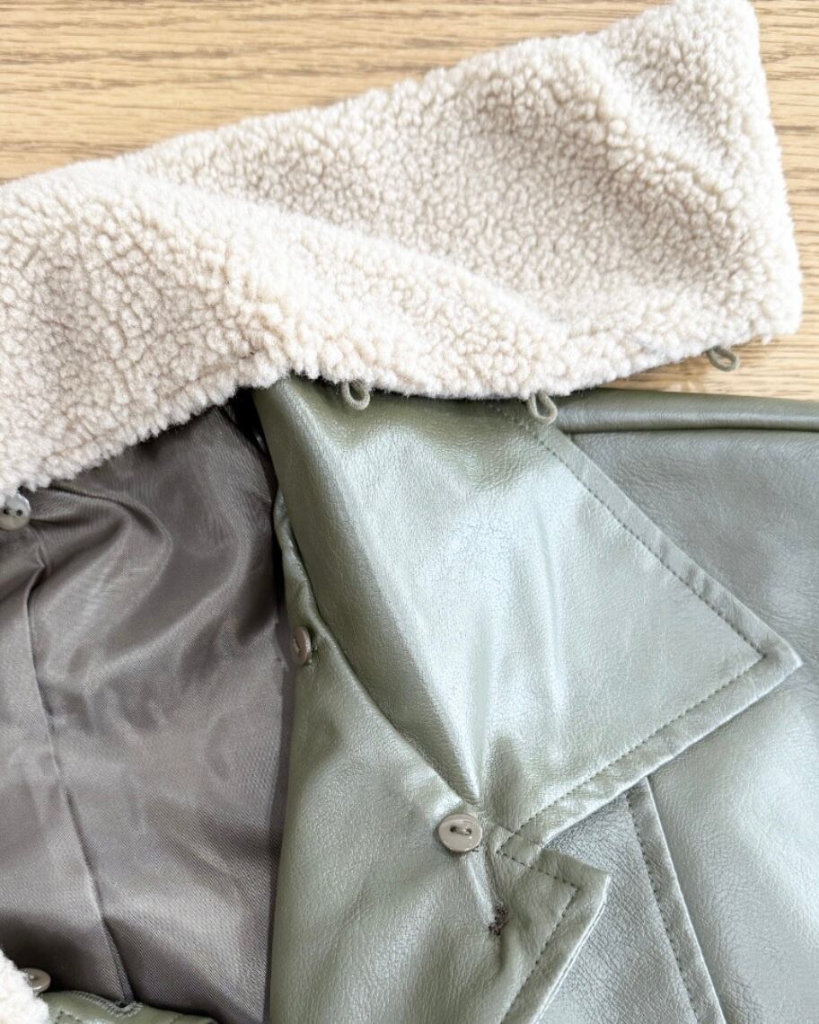 フェイクレザー ボア襟 ジャケット レディース アウター