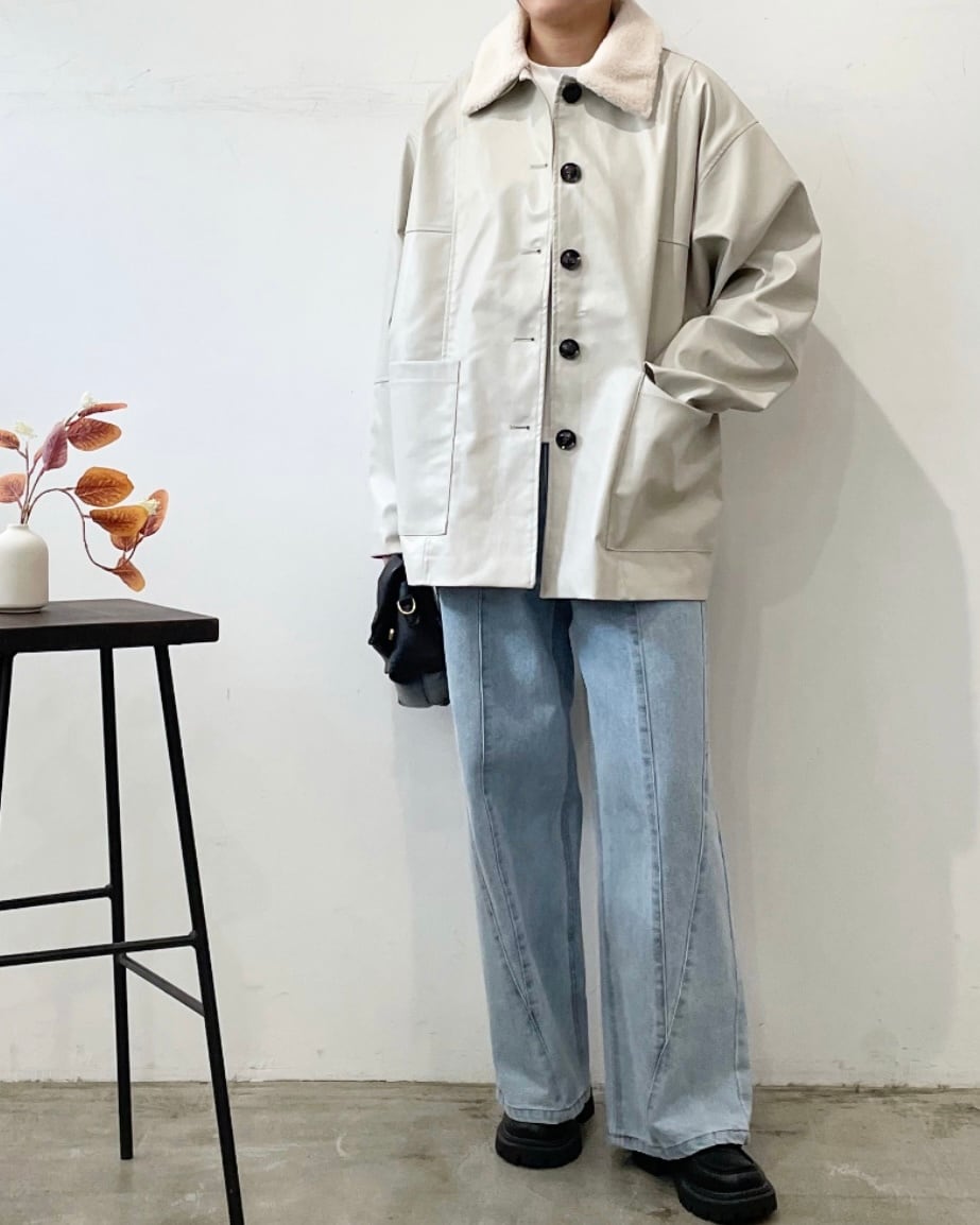 フェイクレザー2WAY襟ボアカバーオール
