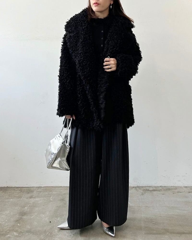 毛足の長いシャギー素材が上品なぬくもりを感じさせ、