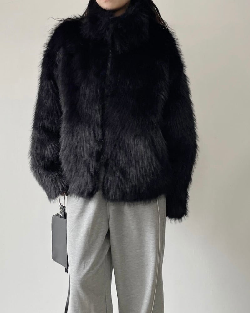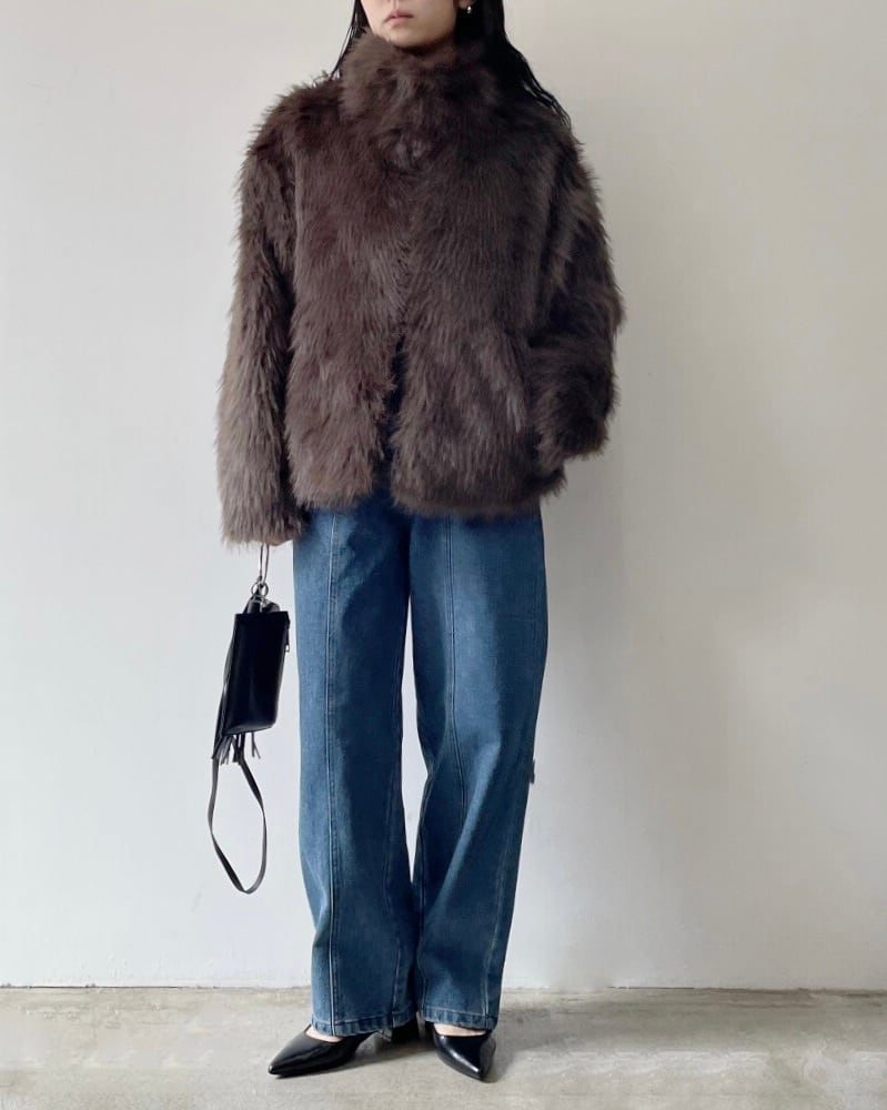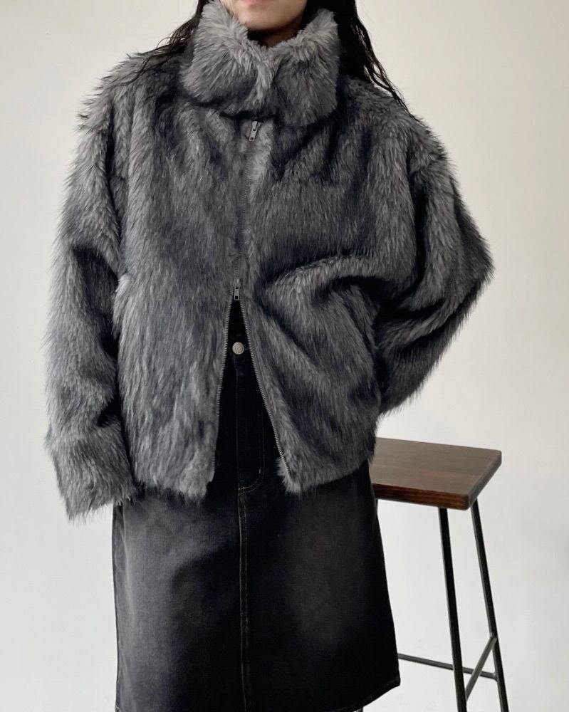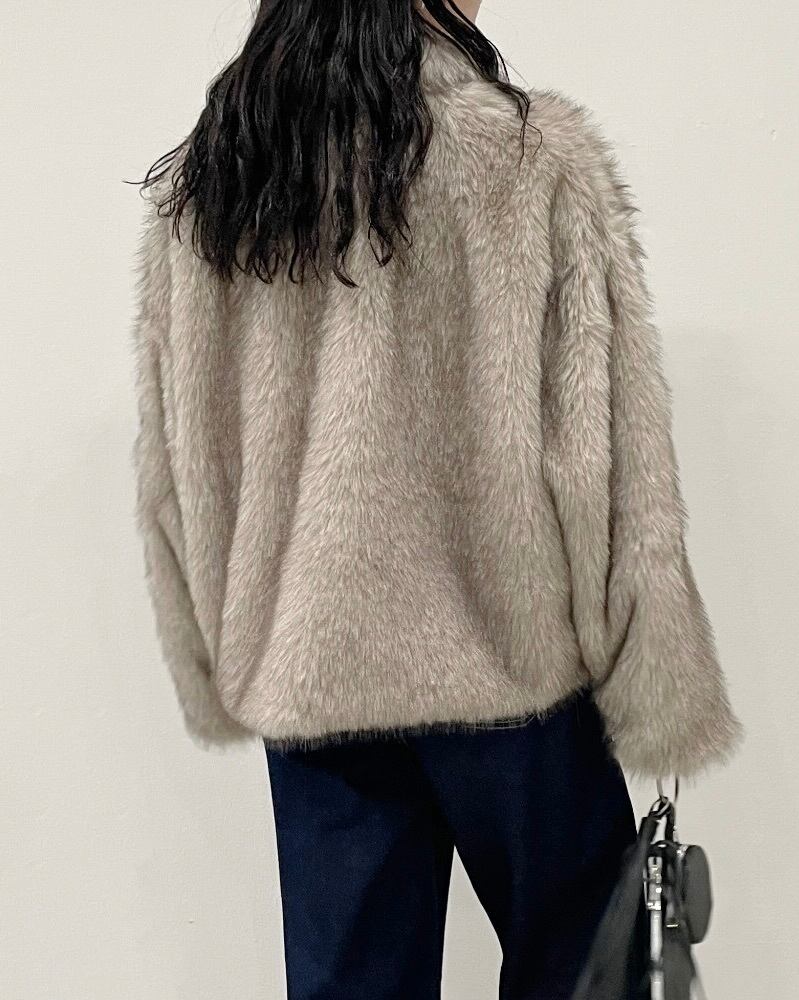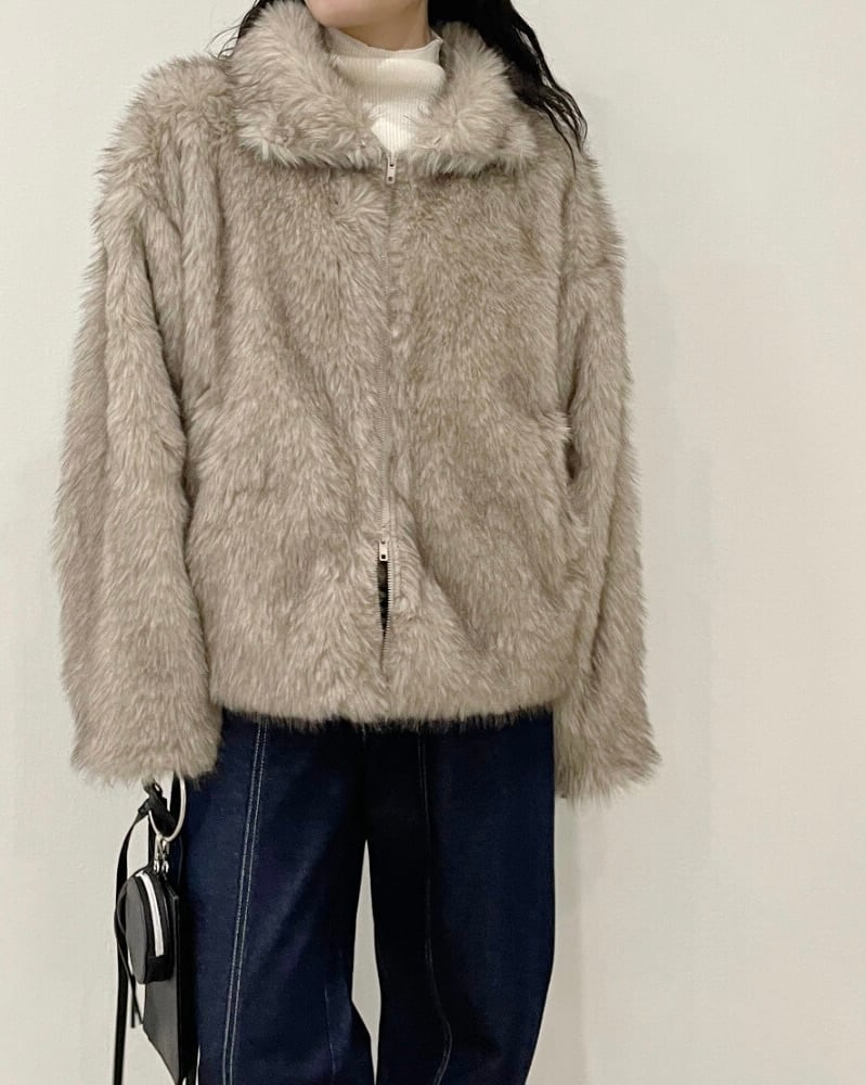 ふんわりとした手触りと上品な光沢が魅力のフェイクファージャケット。
