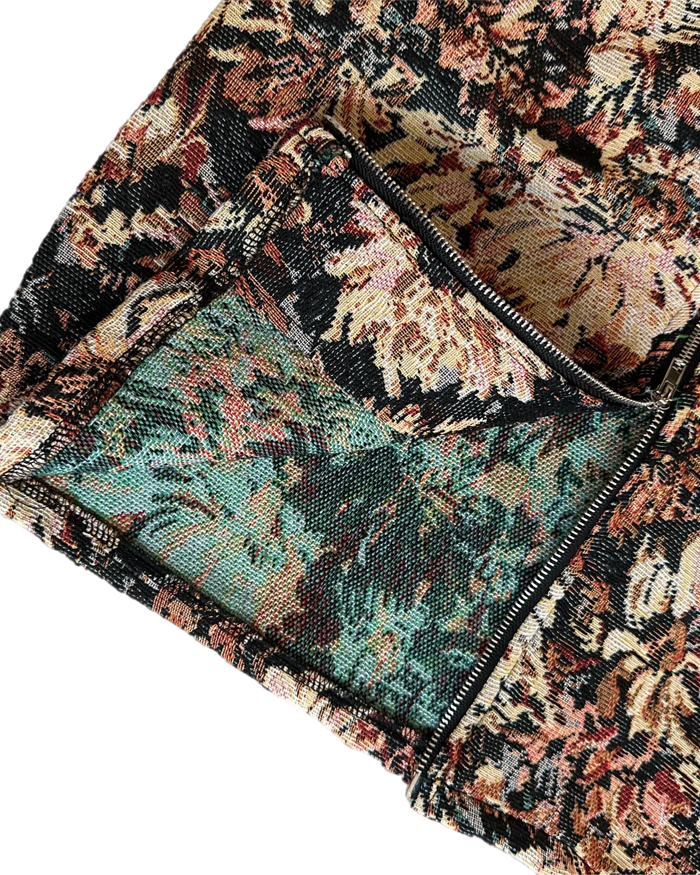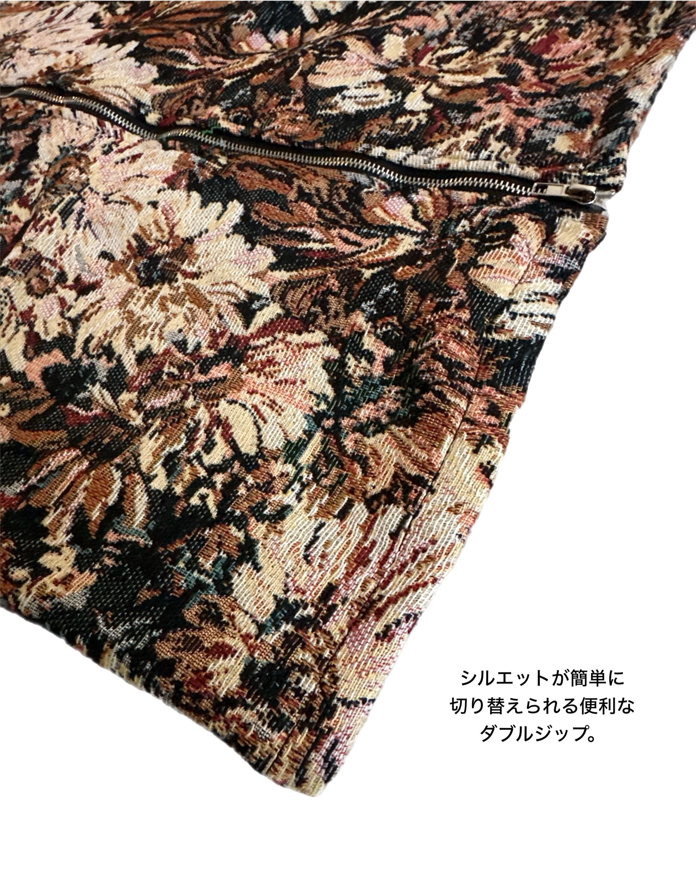 落ち着いた色味のフラワー柄を贅沢に織り込んだ、