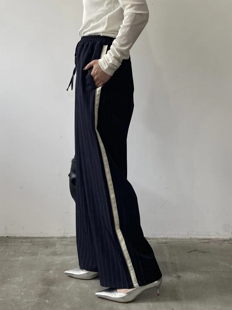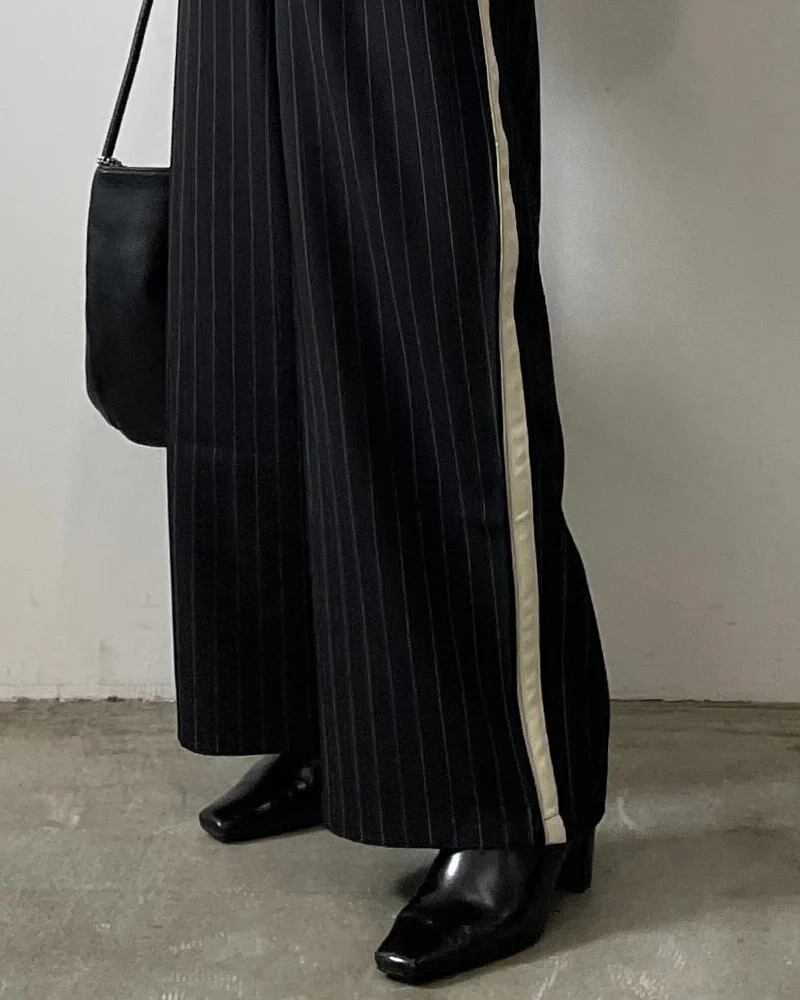 ピンストライプ配色ストレートパンツ