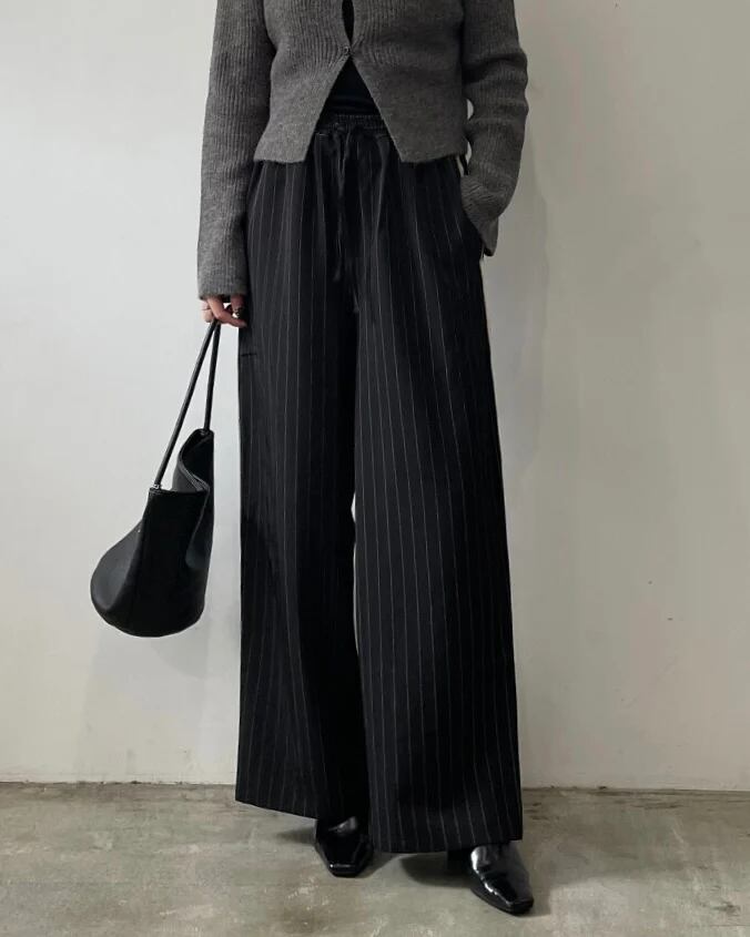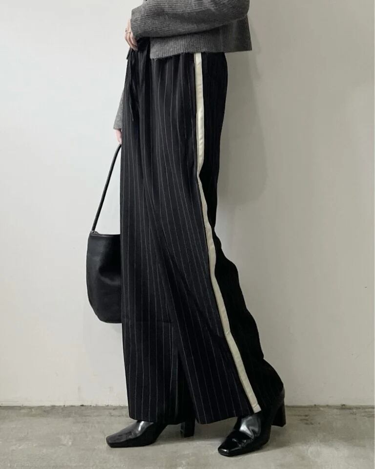 ピンストライプ柄が縦のラインを強調し、脚をすっきり見せてくれます。