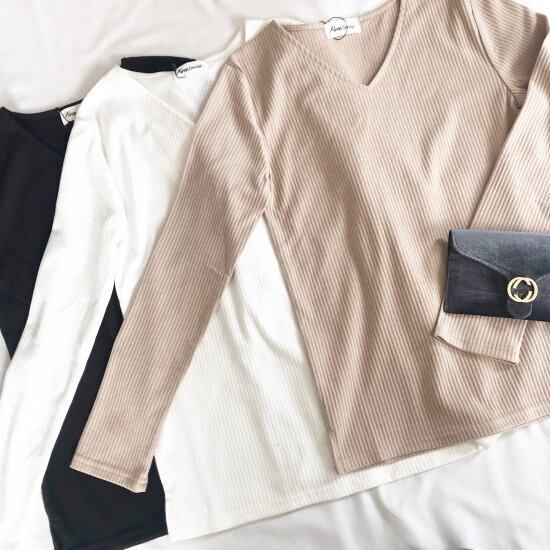ベーシックなVネック長袖TOP♪