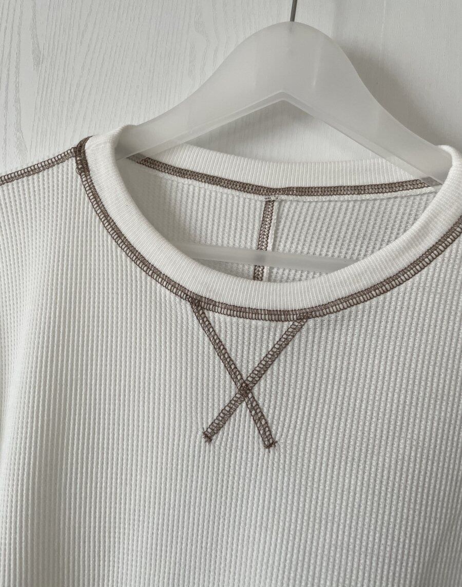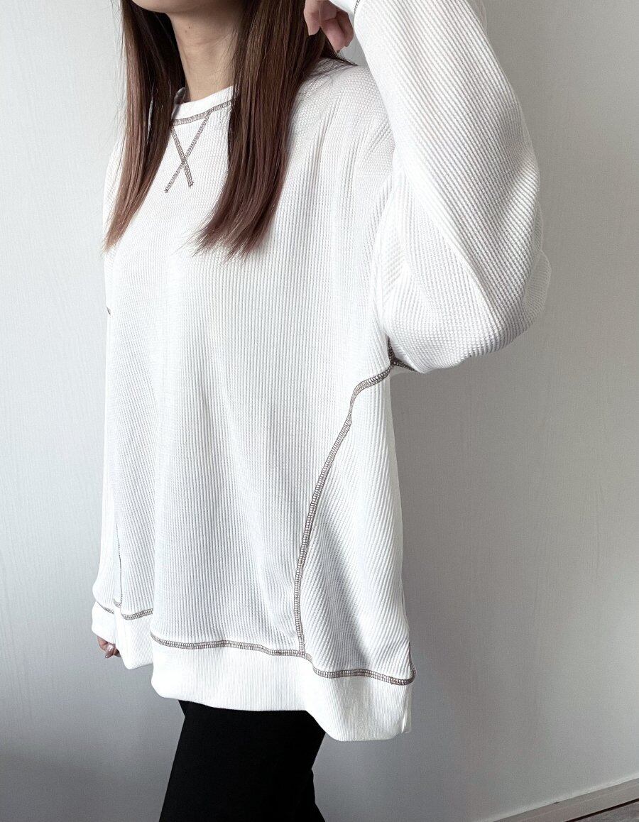 ルーズな着こなしが可愛いワッフル素材カットソー。