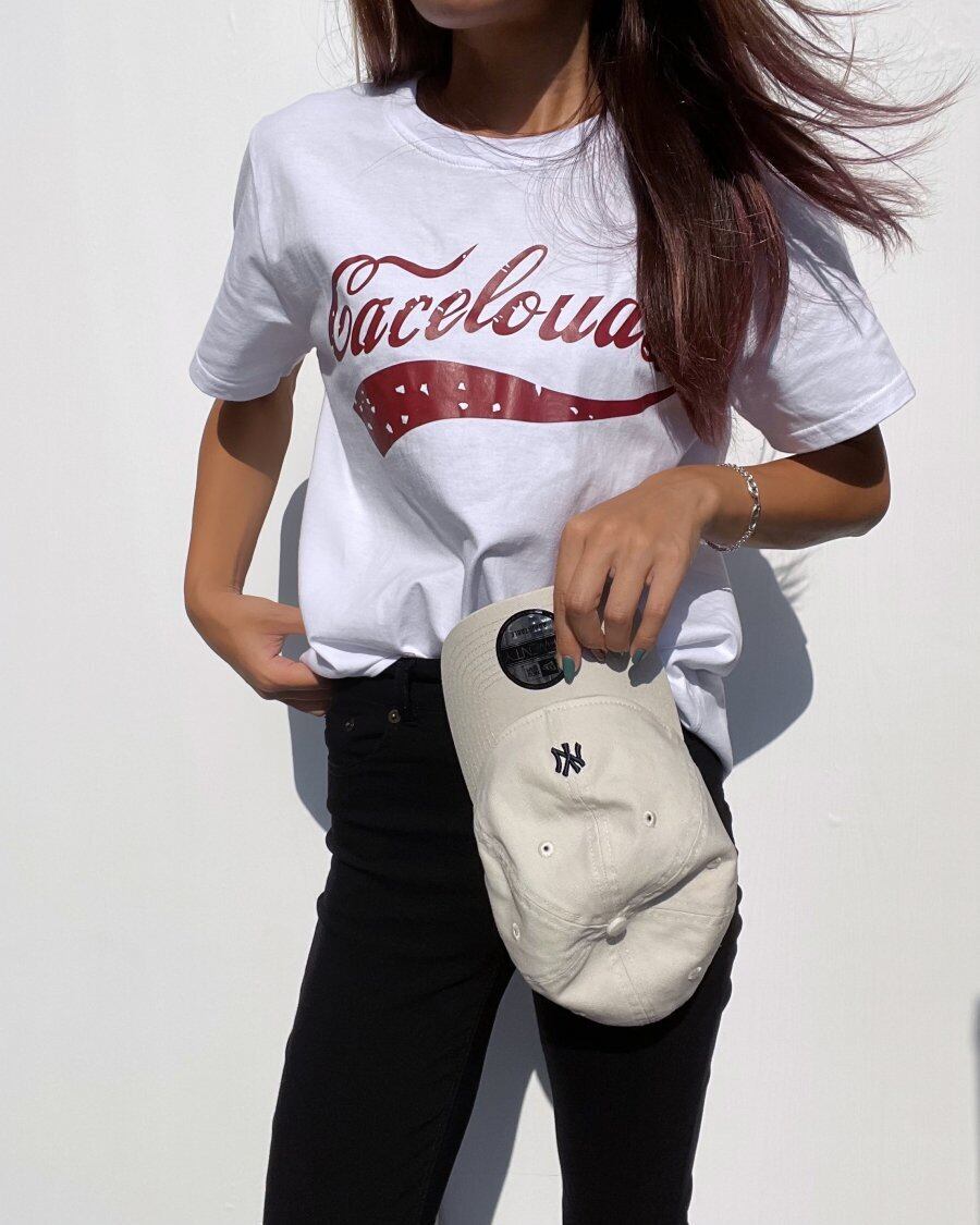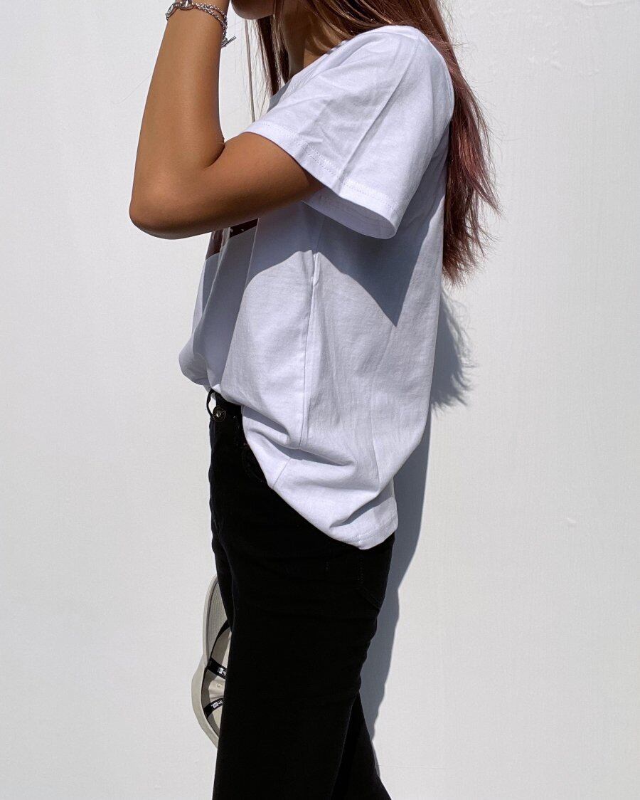 ボトムスを選ばないシンプルなデザインで着まわししやすいのがポイント。